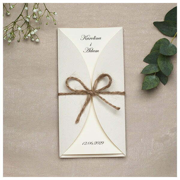 Okładka zaproszenia obwiązana jutowym sznurkiem